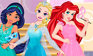 Помогите Жасмин, Эльзе и Ариэль подготовится к балу маскараду во дворце.