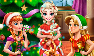 Эльза, Анна и Рапунцель решили провести один из новогодних праздников вместе дома у Эльзы и Анны.