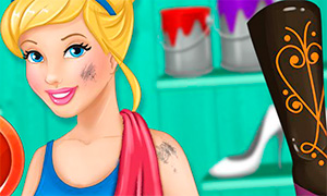 Анна, Рапунцель и другие принцессы приносят в мастерскую Золушки обув, требующую починки.