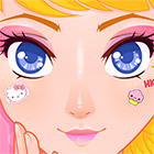 Помоги девушке поухаживать за лицом и сделать новый яркий и позитивный макияж. Бонусом укрась её лицо озорными наклейками с Hello Kity.