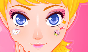Игра в уход за лицом и макияж с красивой девушкой, которой можно будет сделать яркий весенний макияж в стиле Hello Kitty.