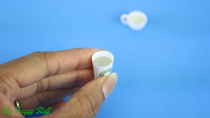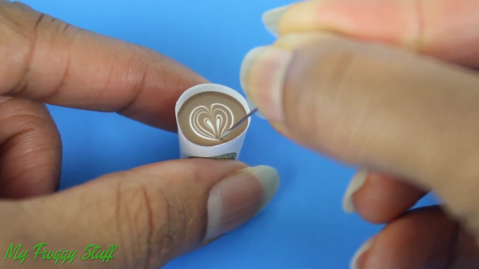 Дайте лаку окончательно высохнуть и ваш стаканчик кофе для кукол будет готов.