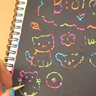 Таким образом можно украсить первые странички в тетрадях по разным предметам, отдельные странички в личном дневнике, сделать необычные открытки на праздник. Черный цвет лучше всего контрастирует с цветными мелками, но ты можешь закрасить верхнюю страничку смесью акриловой краски любого цвета, например ярко розового или темно синего и так далее.