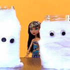 С помощью этого наглядного стоп моушен видео ученицы школы Монстер Хай Клео де Нил и Фрэнки Штейн покажут как можно украсить обычные банки, превратив их в мумии, как украсить маленькие тыквы и как сделать забавные лакомства на Хэллоуин.