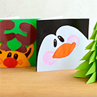 Снеговик, олень или пингвин могут украсить твою новую новогоднюю открытку. И сделать её совсем не сложно. Тебе понадобится белый картон или плотный лист белой бумаги для рисования, цветной картон или цветная бумага, ножницы, клей или двусторонний скотч, а также краски. В видео подробно показан процесс создания открытки с оленем. Открытки со снеговиком и пингвином делаются по такому же принципу. Берется основа нужного цвета, затем вырезается форма мордочки пингвина или лица снеговика и добавляются или рисуются детали.