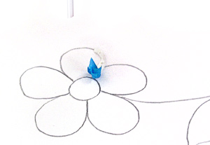 На небольшой участок рисунка нанеси полоску клея (строго по контуру рисунка), клей быстро высыхает, а работа в технике торцевания требует времени, поэтому не нужно покрывать клеем большой участок рисунка.
