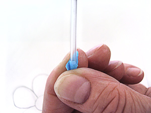 Поставь трубочку с бумагой на начало участка покрытого клеем.