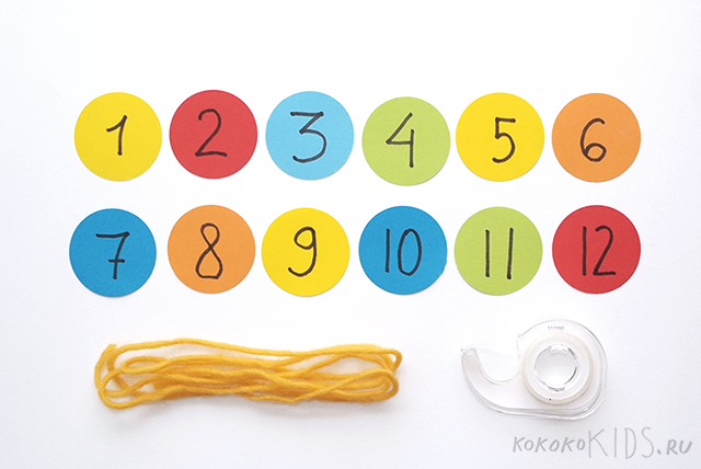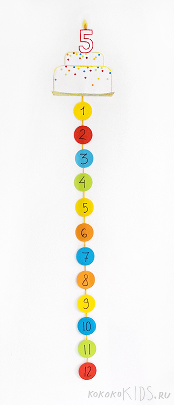 На разноцветных кружках из бумаги напишите цифры в зависимости от количества дней, оставшихся до Дня Рождения.