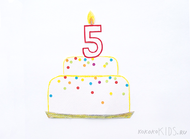 На плотной бумаге нарисуйте торт со свечкой в форме цифры или же с отдельными свечками соответствующего количества.