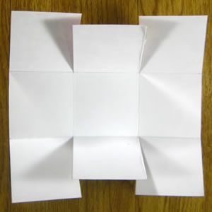 Сделай 2 надреза по сторонам верхних квадратов. Смотри на пример. Сделай загибы как на примере.