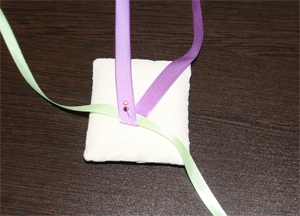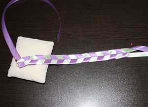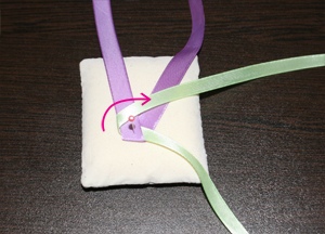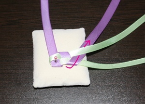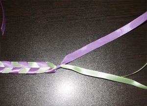 2. Зеленую ленточку поверни поверх фиолетовой.