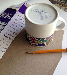 Кружка нужна, для того чтобы сделать основу для будущего инструмента плетения. Обведи дно кружки карандашом на картоне.