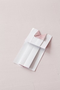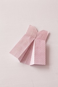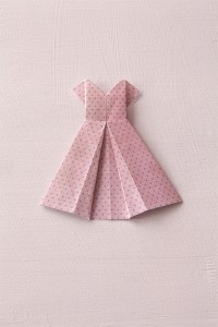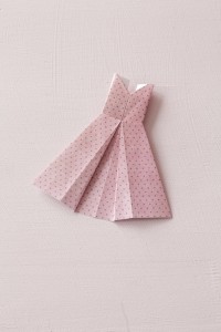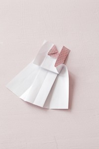 Возьмись за края бумаги виднеющиеся за V образным вырезом и разверни их, формируя красивые короткие рукава.