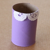 Возьми заготовку трубки или трубку основу от туалетной бумаги и покрась ее в сиреневый цвет. Отложи покрашенную заготовку в сторону, дай ей обсохнуть.