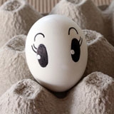 С помощью перманентного маркера нарисуй глаза и брови Дейзи на яйце. Рисовать удобнее когда яйцо стоит на подставке.