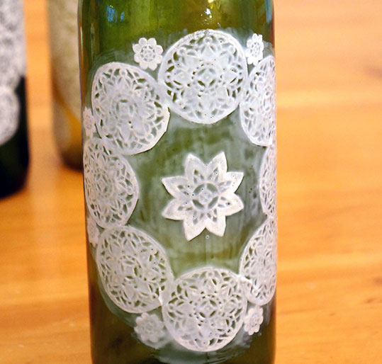 Поделки: Декупаж банки или бутылки ажурными салфетками