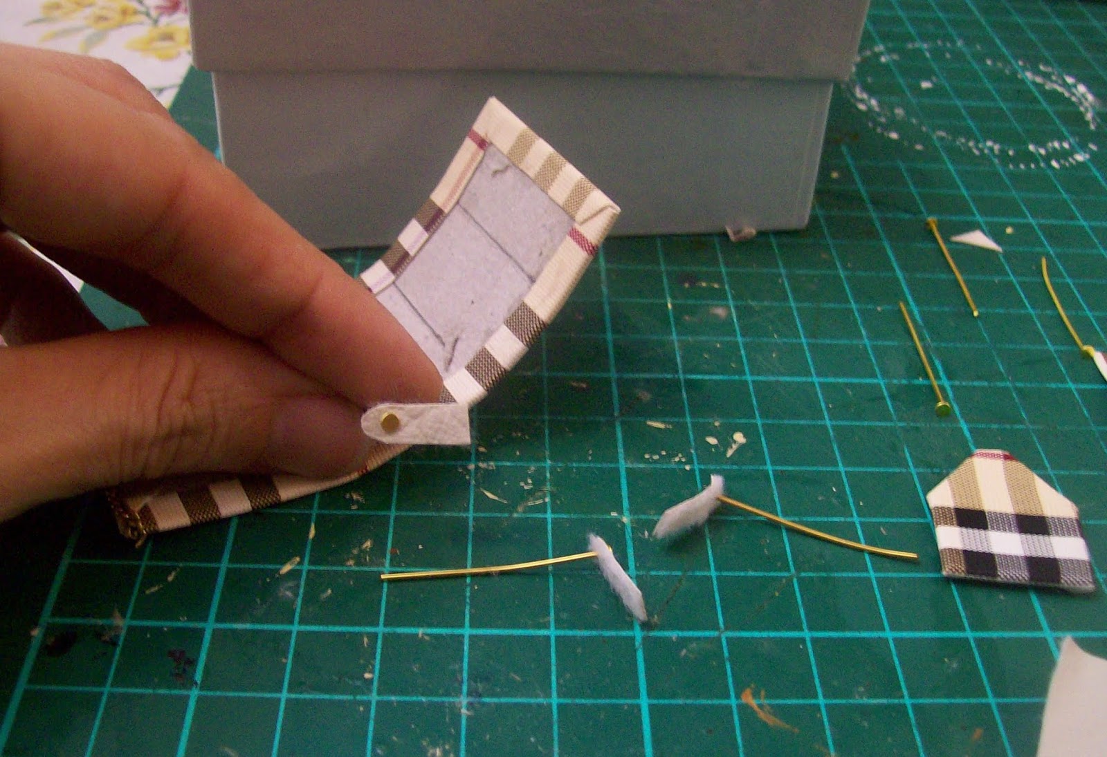 Для кошелька нужен просто прямоугольник картона обклеенный тканью. Его нужно свернуть и склеить, а сверху нужно приклеить кусочек кожи с маленьким фурнитурным гвоздиком.