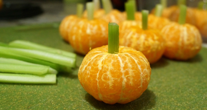 А еще можно превратить мандарины в маленькие тыквы, если в серединку вставить кусочки сельдерея.