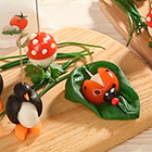 Очаровательных пингвинов, божьих коровок и мухоморчики можно легко сделать из шариков моцареллы. А для размера закуски побольше можно использовать вареные яйца и большие помидоры (а для пингвинчиков также небольшую часть яйца).