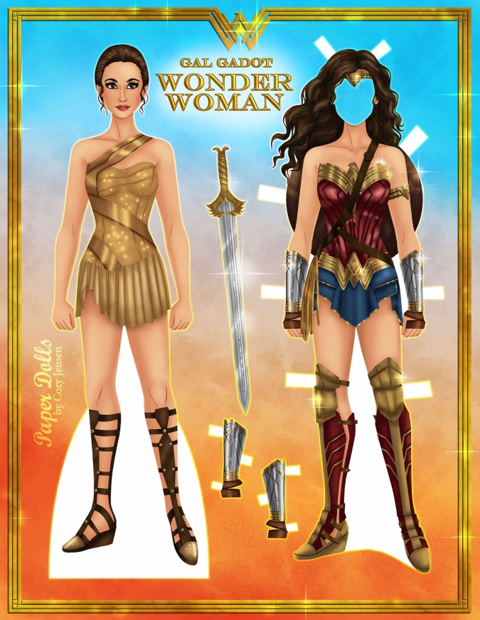 Очень многие зрители и критики сошлись во мнении что Галь Гадот очень хорошо исполнила роль Чудо Женщины, и образ созданный командой дизайнеров и актрисой получился красивым и запоминающимся. С помощью этих распечаток ты сможешь распечатать и вырезать свою собственную бумажную куклу Чудо Женщины с нарядами, которые ты могла видеть в фильме.