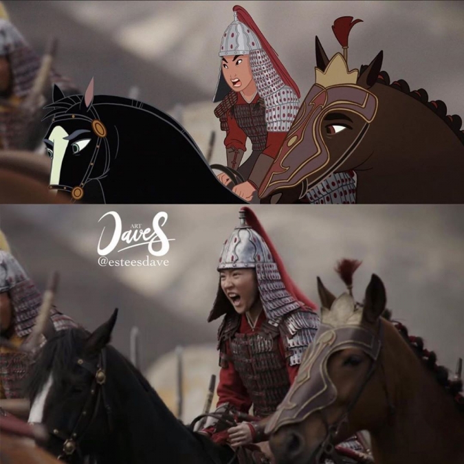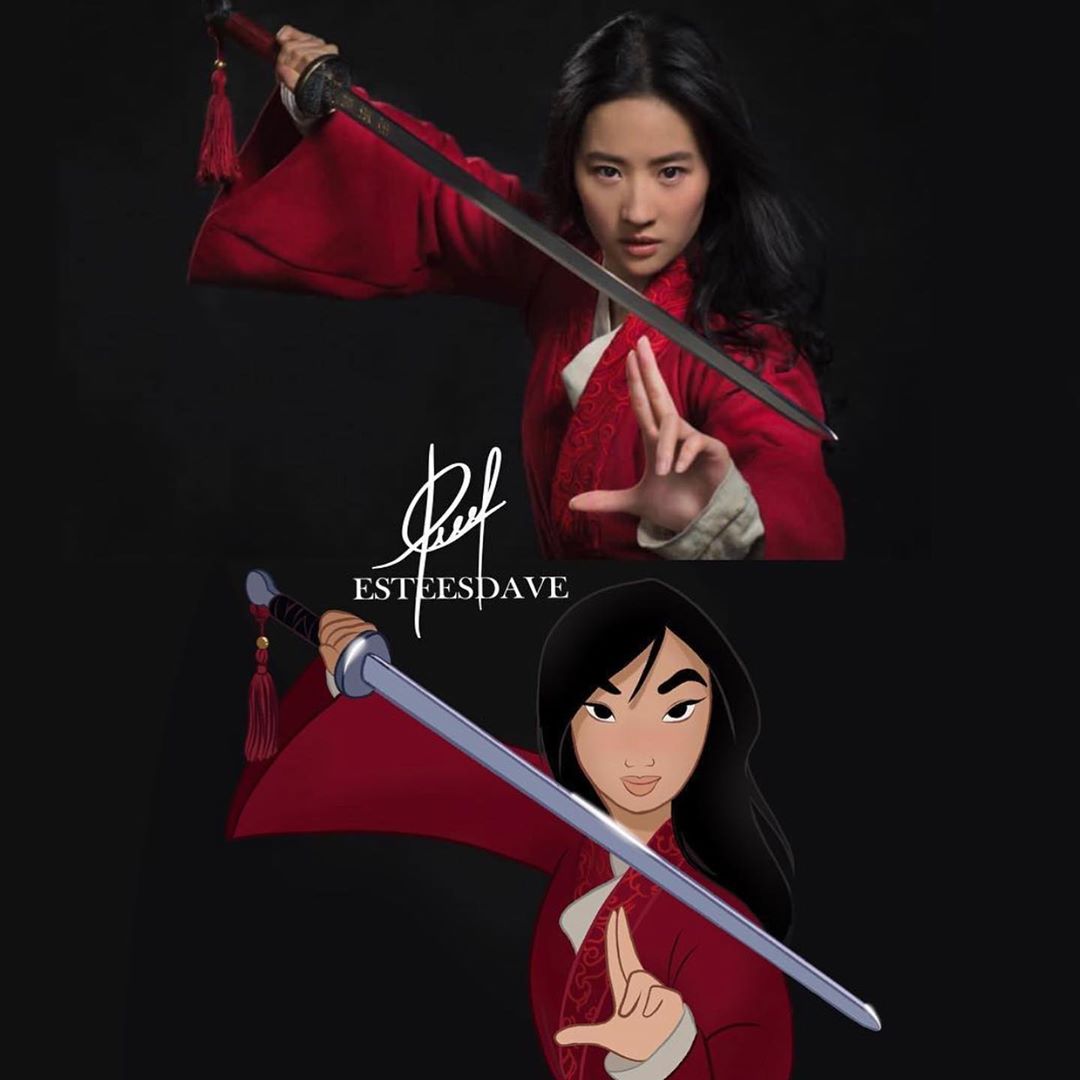 Художник esteesdave нарисовал целую серию артов в честь премьеры фильма Мулан в США. На этих картинках он изобразил Мулан из оригинального мультфильма в нарядах героини из фильма.