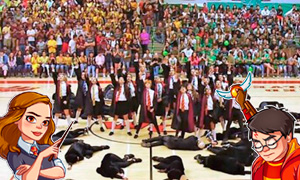 По сути это рекламный ролик. Но происходящее в нем не спецэффекты. Это настоящие профессиональные парашютисты и они одеты в костюмы для игры в Квиддич и у них есть квоффл и метлы. Вот только им пришлось открыть парашюты раньше чем они смогли поймать снитч, чтобы не получилась сцена из "Гарри Поттера и Узник Азкабана". В любом случае это здорово и достойно восхищения.