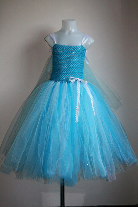 С платьем Эльзы простор фантазии очень большой. Это может быть и длинное платье из длинных лент, или просто короткая пышная юбка с аппликациями из снежинок.