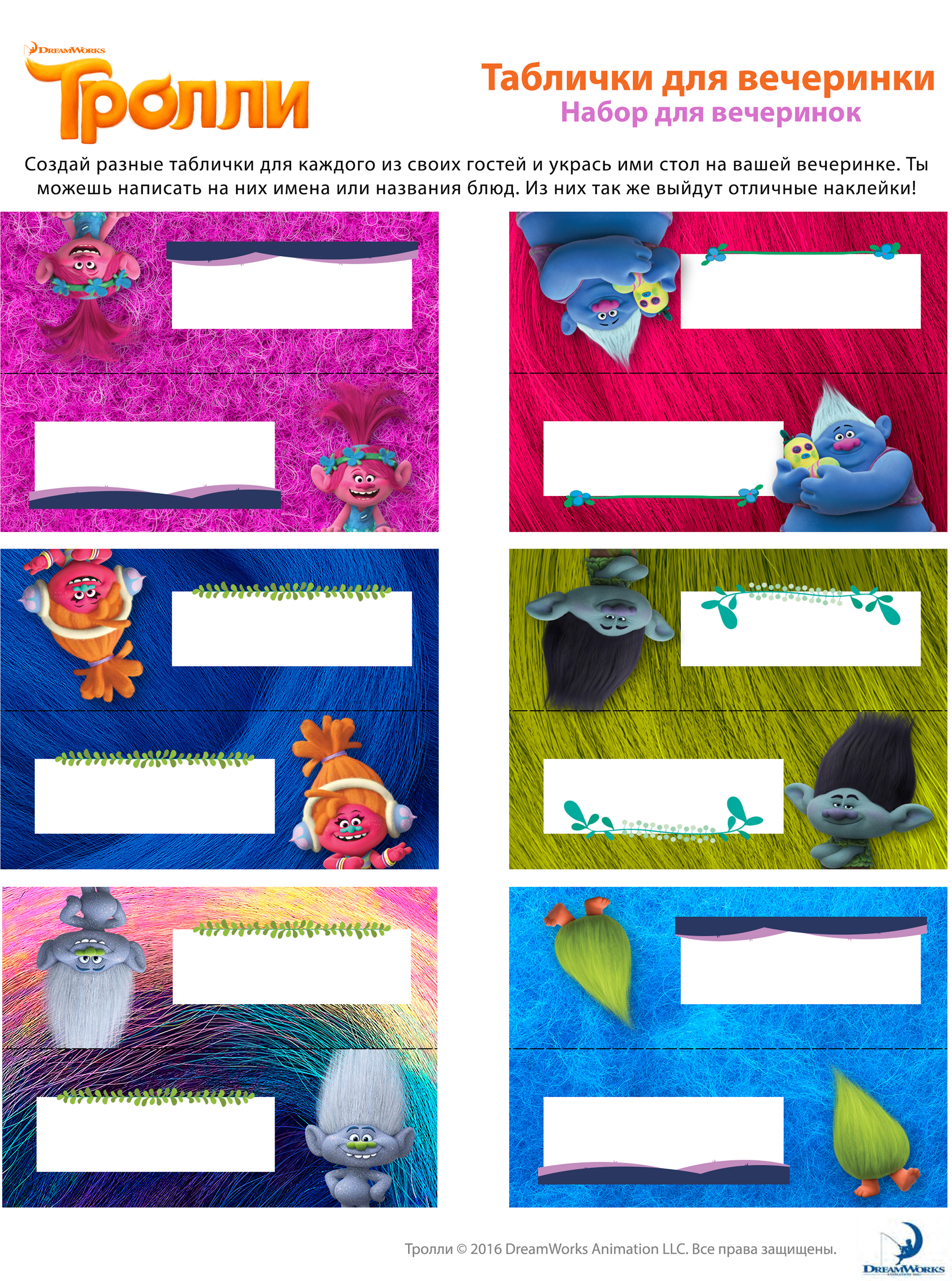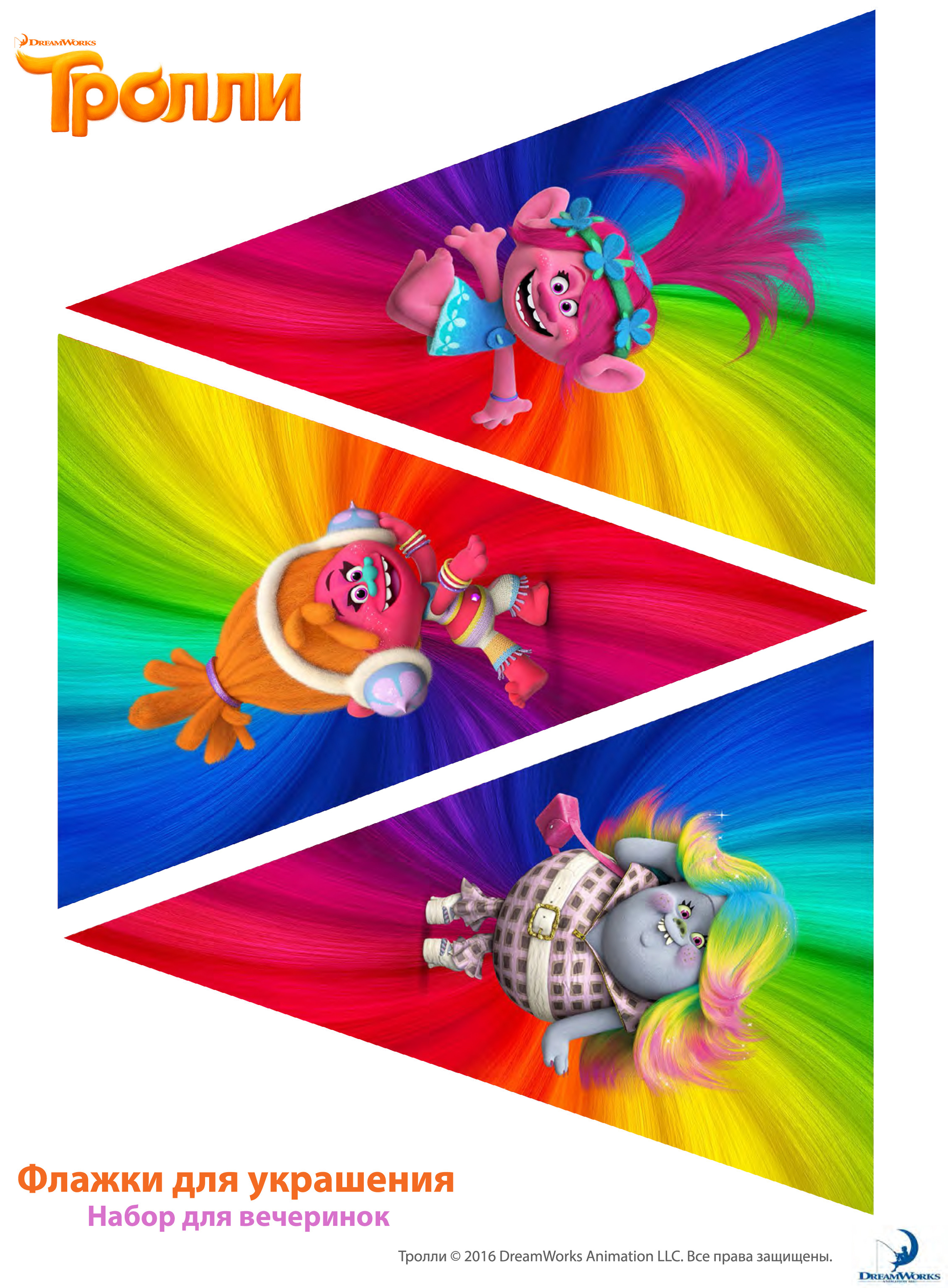 Яркие Тролли с их торчащими вверх прическами, оптимизмом и слоганом "Найди свое счастье!" отлично подходят в качестве темы для любого праздника.