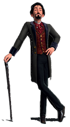 Дети относятся к этому толстячку с умильным лицом и в огромных очках как к большому плюшевому медведю. Сутуловатый, в высокой шляпе, под которой скрываются его кудряшки, он похож не то на нотариуса, не то на провинциального чиновника. Трудно понять, кто этот парень на самом деле.