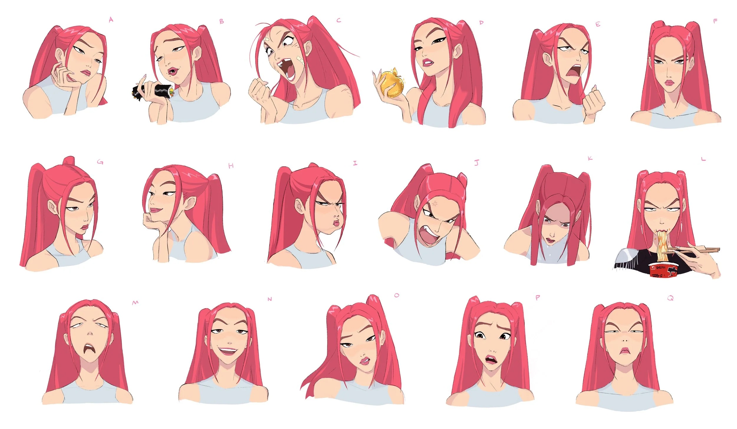 Концепты, которыми поделился с аудиторией Скотт Ватанабэ среди прочего содержат листы с вариантами эмоций главных героинь Кейпоп-охотниц на демонов, этот пост будет посвящен Мире. Ниже вы найдете все лица нарезанные на отдельные картинки, которые вы можете по желанию использовать для оформления в соц сетях и переписках. Здесь есть и просто очень красивые изображения Миры, и забавные с едой, и грусть, и злость, и усталость и даже боевая радость.