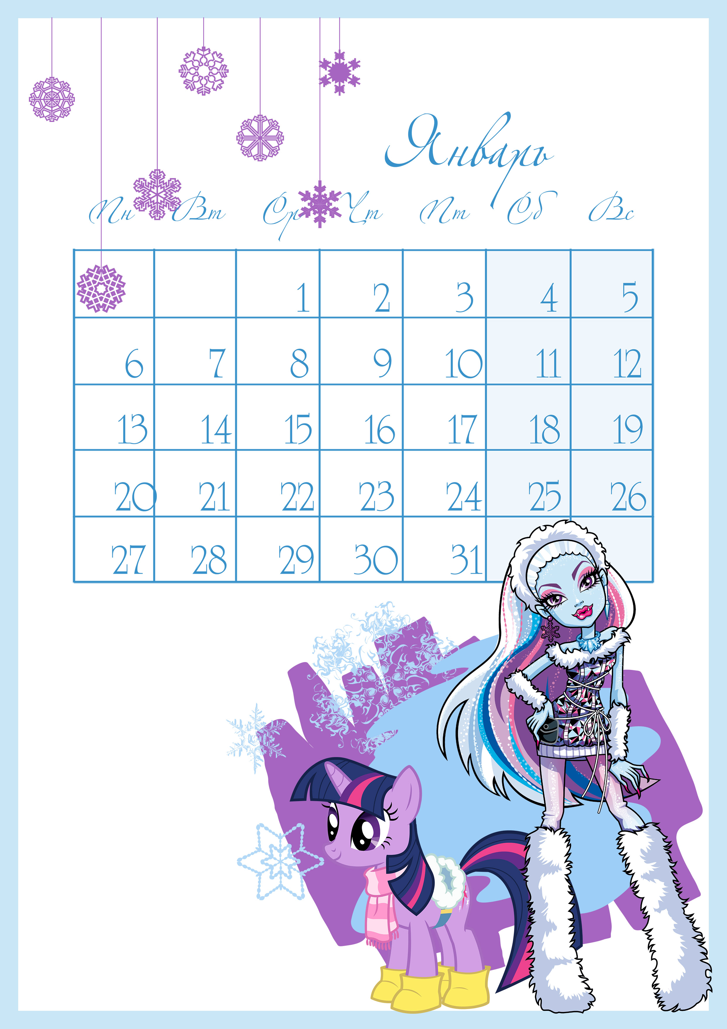 Календарь с героями мультфильмов на 2014 год: страничка Января