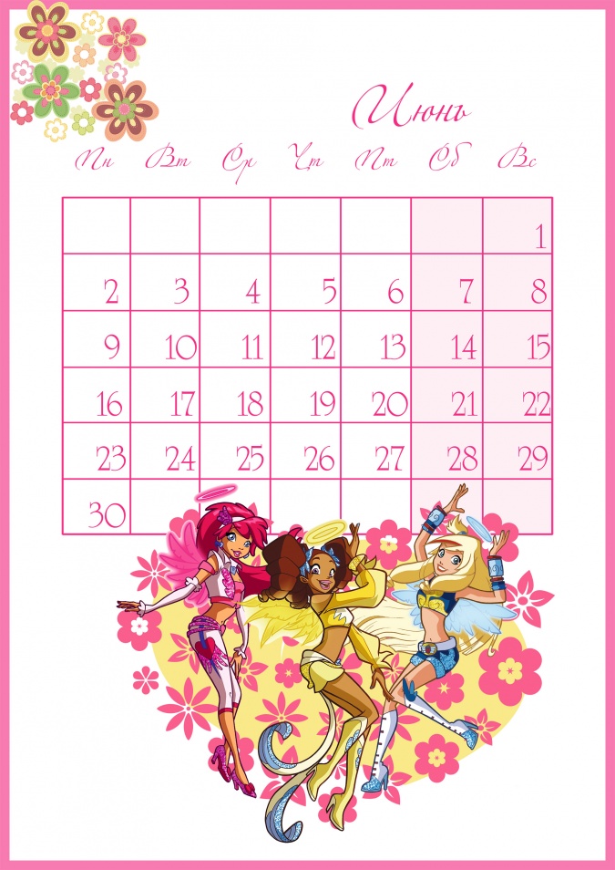 Календарь на Июнь 2014 года с Раф, Сладкой и Ури