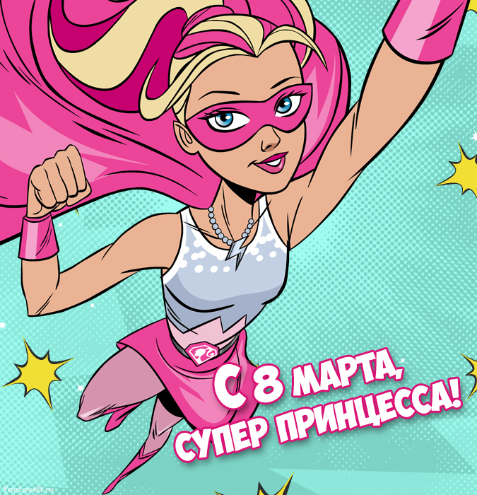 Для всех кто считает себя настоящими супер героинями и супер принцессами мы подготовили праздничные открытки с Барби в образе Супер Принцессы на 8 Марта. Сохрани эти открытки себе на память или разошли лучшим подругам в праздник 8 Марта.