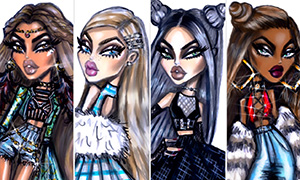 Подружки Братц и их парни, нарисованные рукой дизайнера моды.
