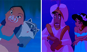Анимированные гифки, позволяющие нам сравнить персонажей мультфильма и фильма студии Дисней.