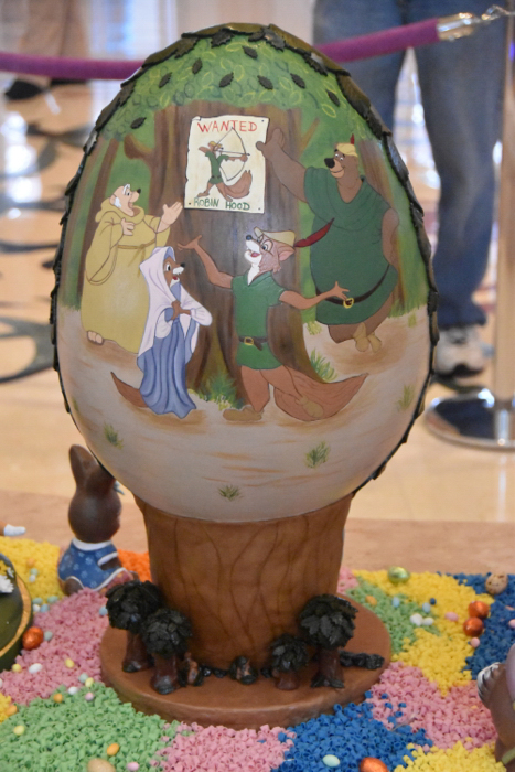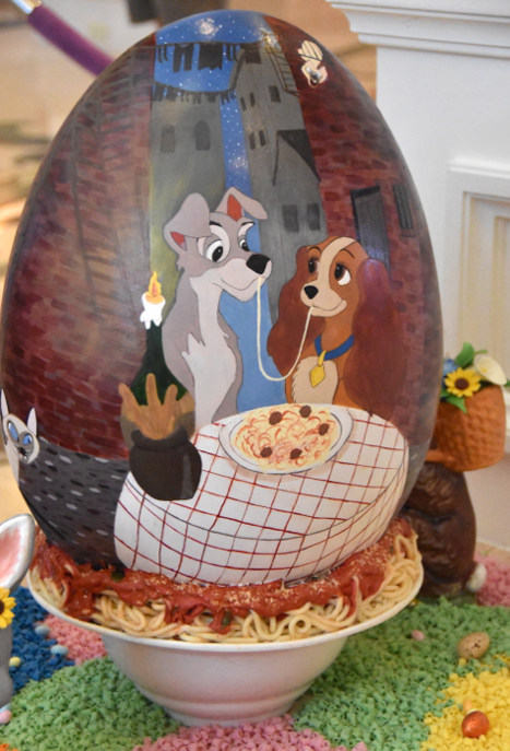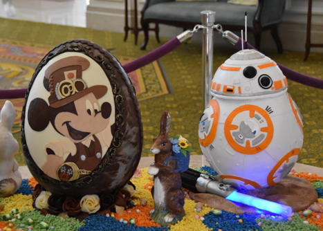 В знаменитом отеле Disney's Grand Floridian Resort, находящемся рядом с парком развлечений Диснейленд в США на Пасху ежегодно проводят выставку огромных шоколадных яиц. Эти яйца сделаны профессиональными кондитерами и представляют собой настоящие произведения искусства. Вес некоторых их этих яиц достигает 9 килограмм. В этом году в экспозицию добавили шоколадные яйца с такими персонажами как Арло и Би Би 8. Но конечно же среди других персонажей можно было увидеть Эльзу, Рапунцель, фею Динь Динь, Микки, Стича и многих других.
