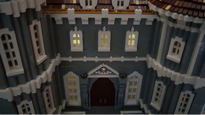Это 2-х метровый замок Красавицы и Чудовища. Для его создания автору потребовалось 500 тысяч различных кубиков Лего. Автор Кевин Холл даже сделал свет в некоторых комнатах замка и отлично продумал все его детали.