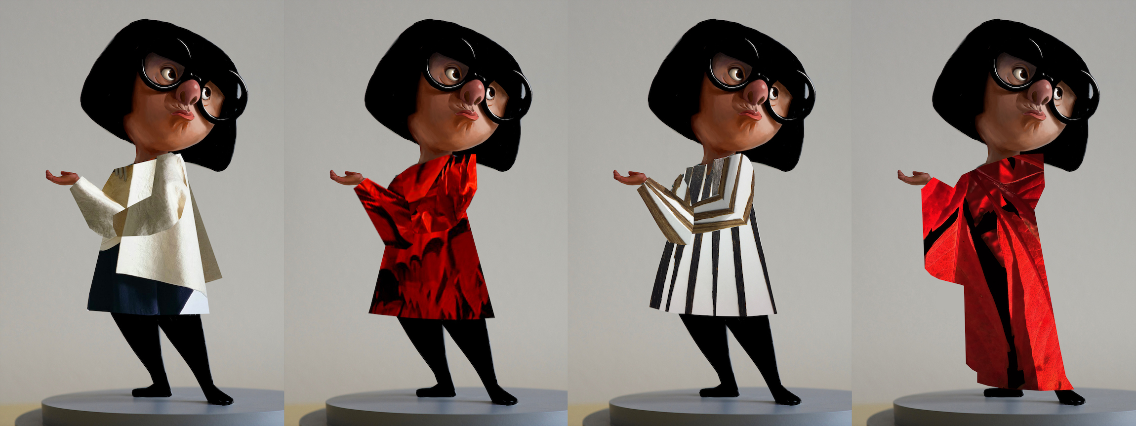В дизайне одежды художники аниматоры также черпали вдохновение из моды середины прошлого столетия. Это заметно и по фасонам и по используемым текстурам.