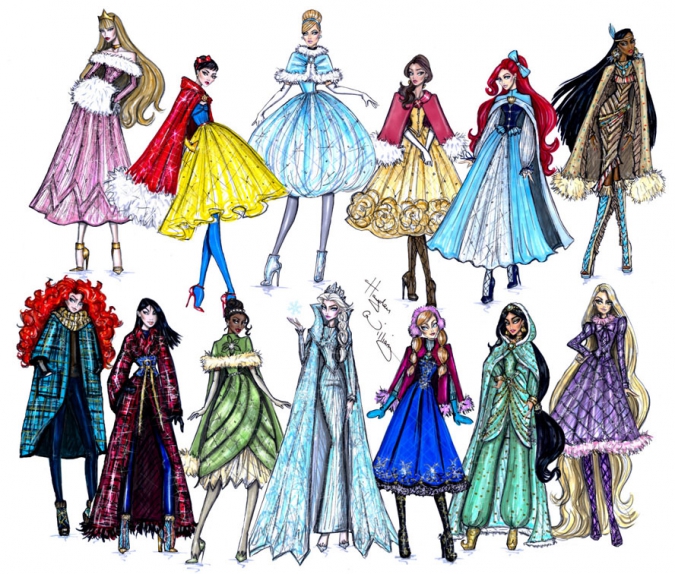 Теги: Дисней Принцессы Зимняя мода Мода Иллюстрации Дизайнерские иллюстрации Эльза Анна Рапунцель Мерида Золушка Ариэль Аврора Белоснежка Белль Тиана Жасмин Мулан Покахонтас