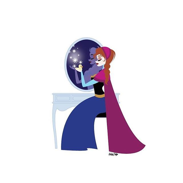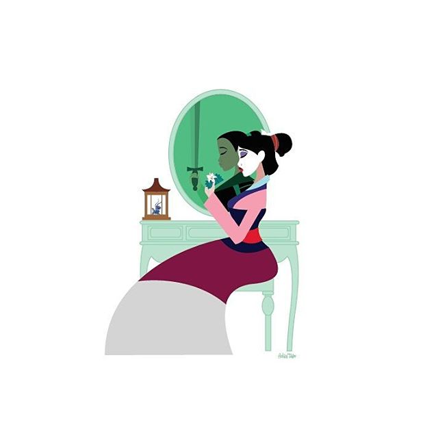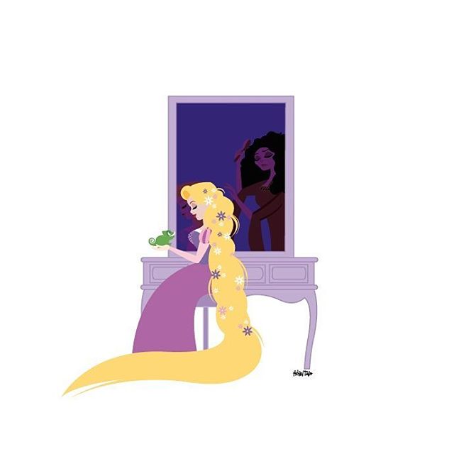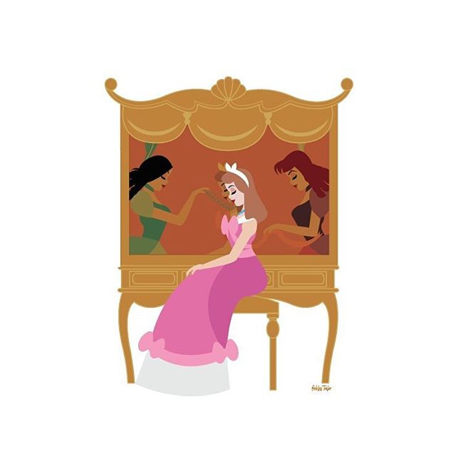 На этих рисунках знаменитые и второстепенные героини Дисней присели у зеркал. И здесь интересны как сами принцессы и другие героини, так и отражения в зеркалах.