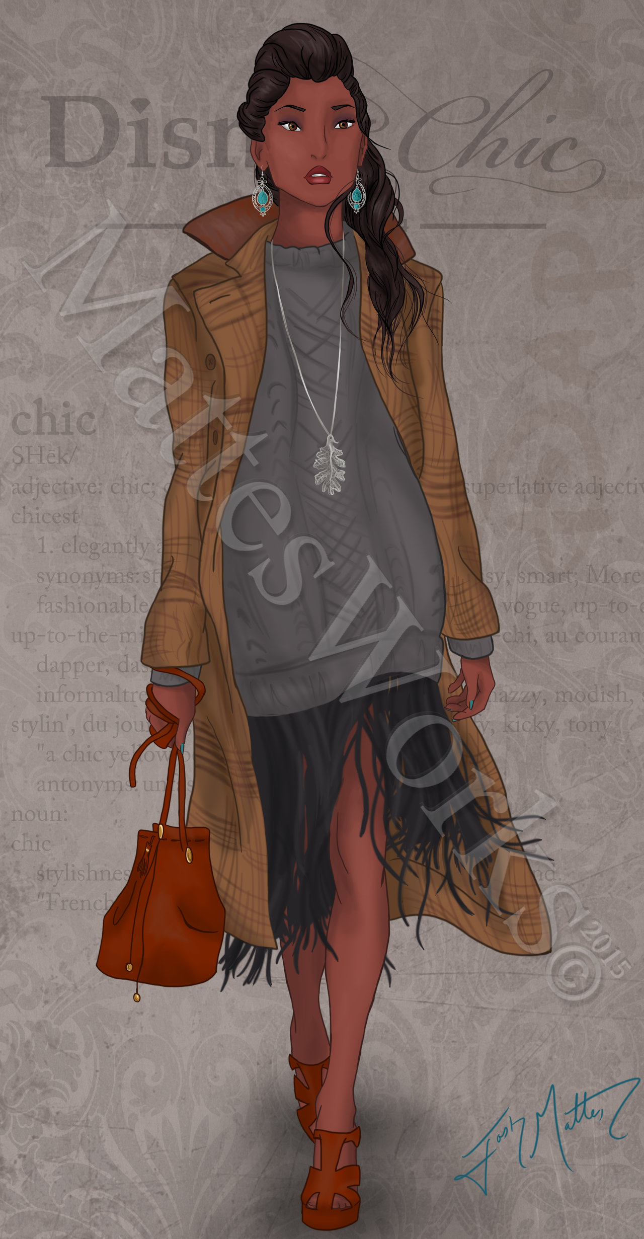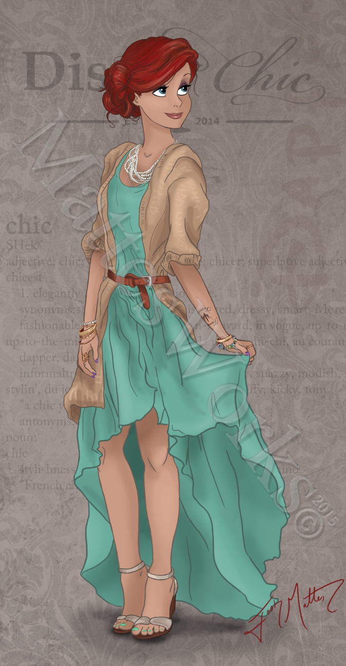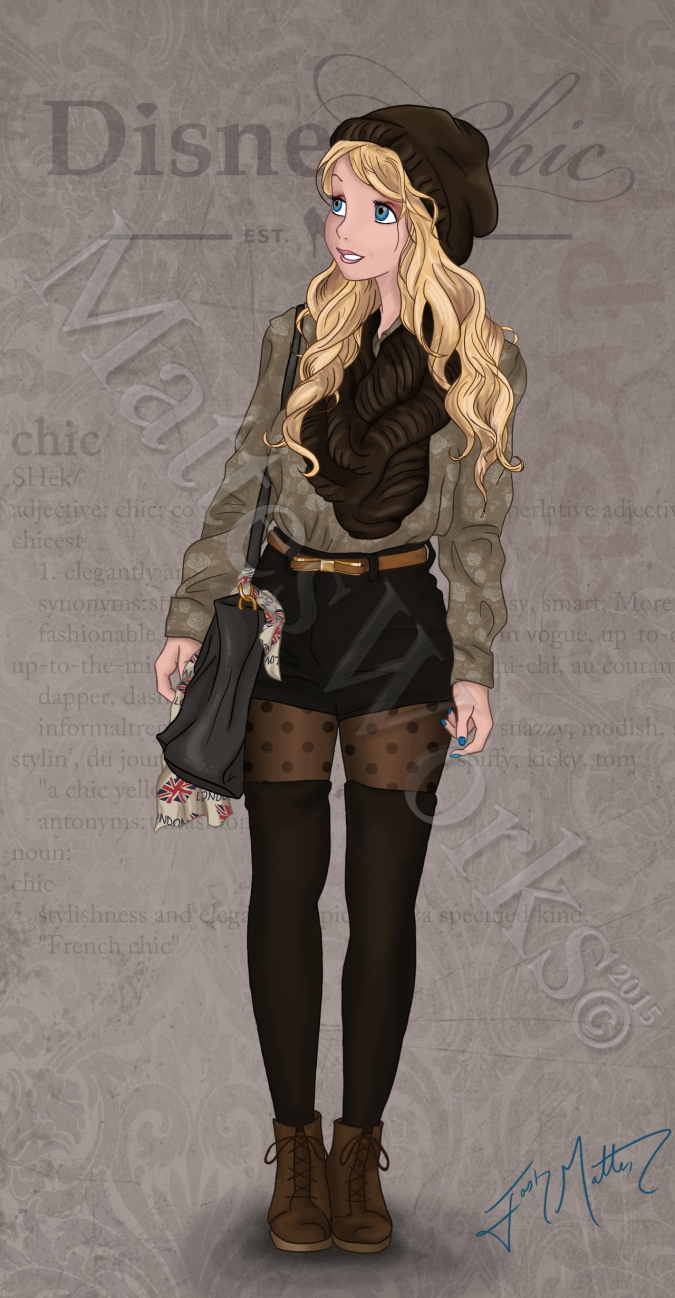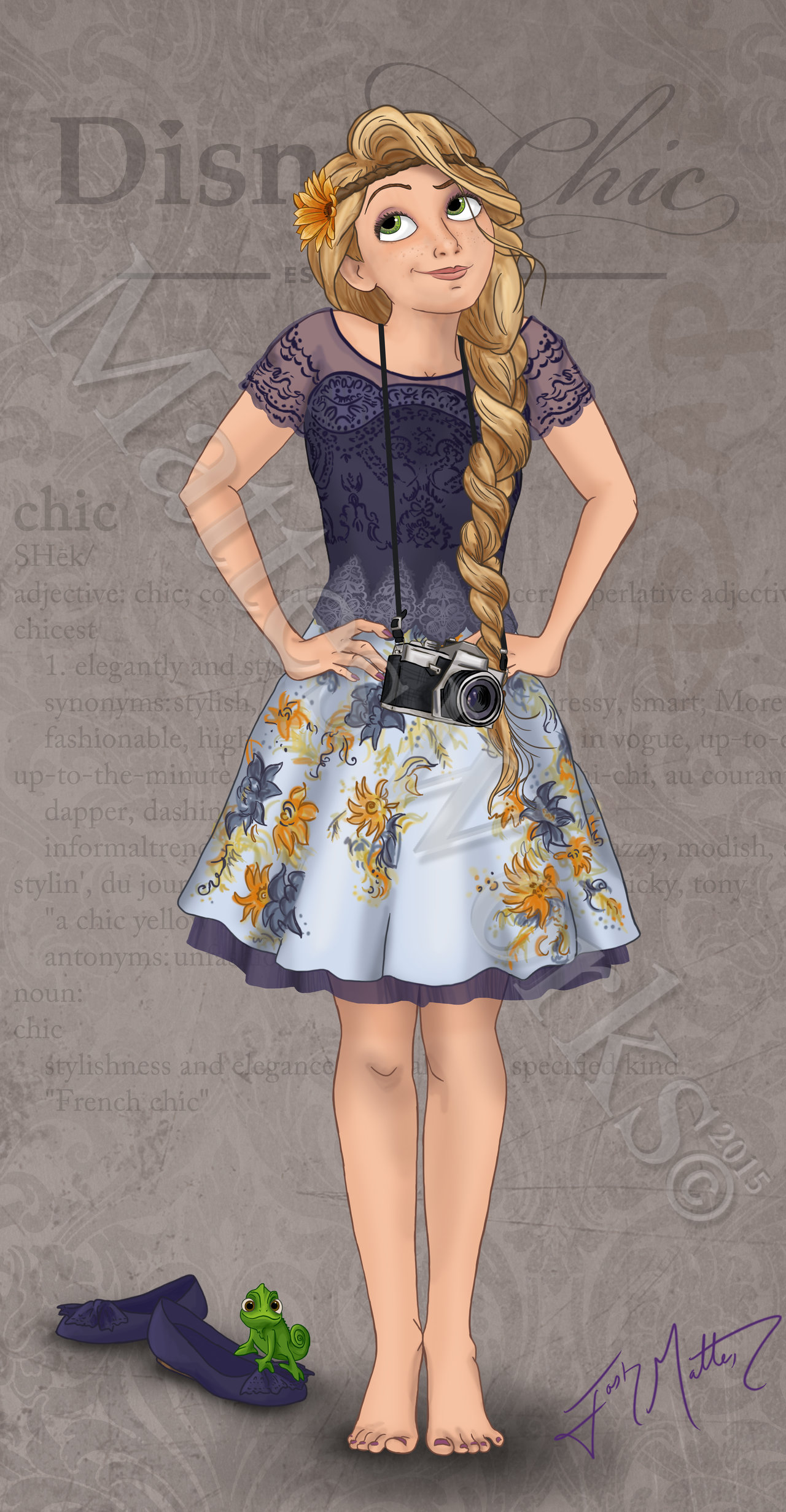 Он решил нарисовать знаменитых героинь и героев Дисней в современной одежде, с современным макияжем и прическами, при этом подобрав для каждого из них стиль, подходящий их характерам. Так для Ариэль он выбрал стиль бохо-шик, а для Рапунцель несколько элементов стиля хиппи. Эльзу и Покахонтас он постарался нарисовать уверенными и целеустремленными. Многие цвета и детали в их нарядах не случайны, так цвет рубашки Алладина это отсылка к Джинни, а его жилет - отсылка к наряду, который носил Алладин в мультфильме.