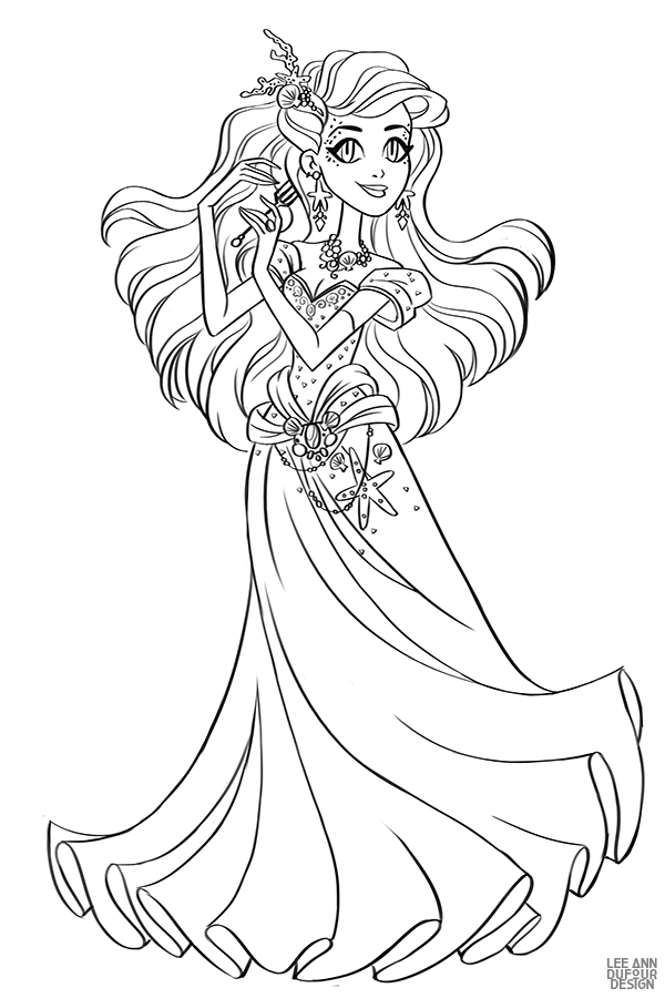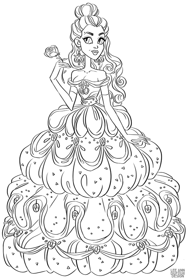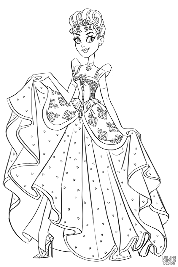Раскраски героинь Дисней Принцесс из этой новости - это работы художницы Lee Ann Dufour. И как ты видишь, автор изобразила принцесс (и не только их) в новых платьях.
