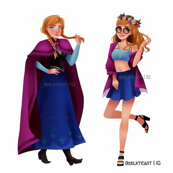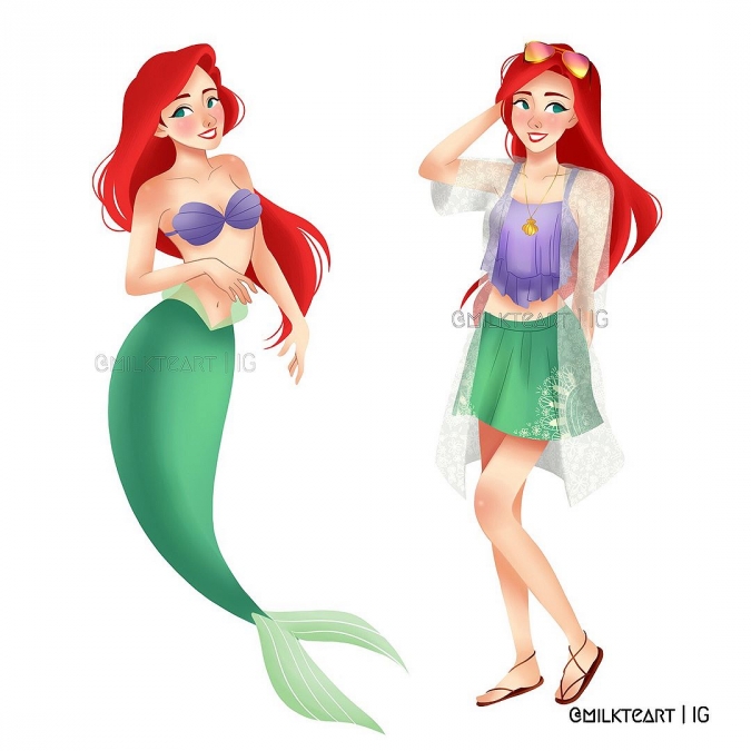 Milkteart немного пофантазировала на тему как могли бы выглядеть Дисней Принцессы, если бы они жили сейчас среди нас и вот что у неё получилось - Дисней Принцессы и современные девушки: