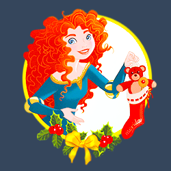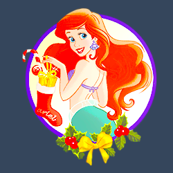 Красочные новогодние аватарки для ваших профилей ВКонтакте и других сайтах с принцессами Ариэль, Рапунцель, Белль, Золушкой, Тианой и Меридой.