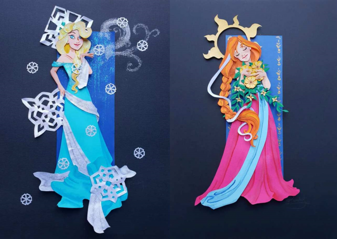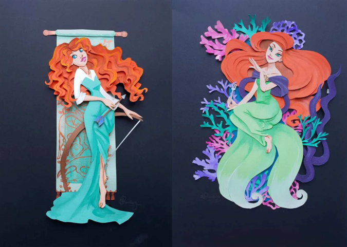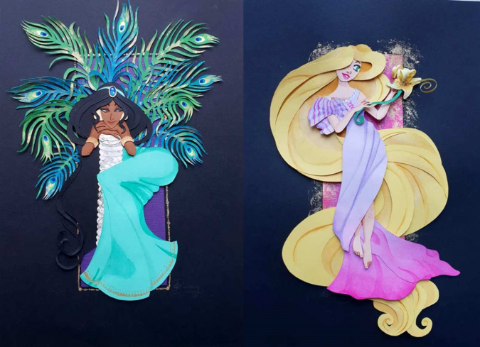 Три года ушло у художницы под ником Tella-in-SA на создание её серии работ с бумажными версиями Дисней Принцесс. Но этого того стоило.