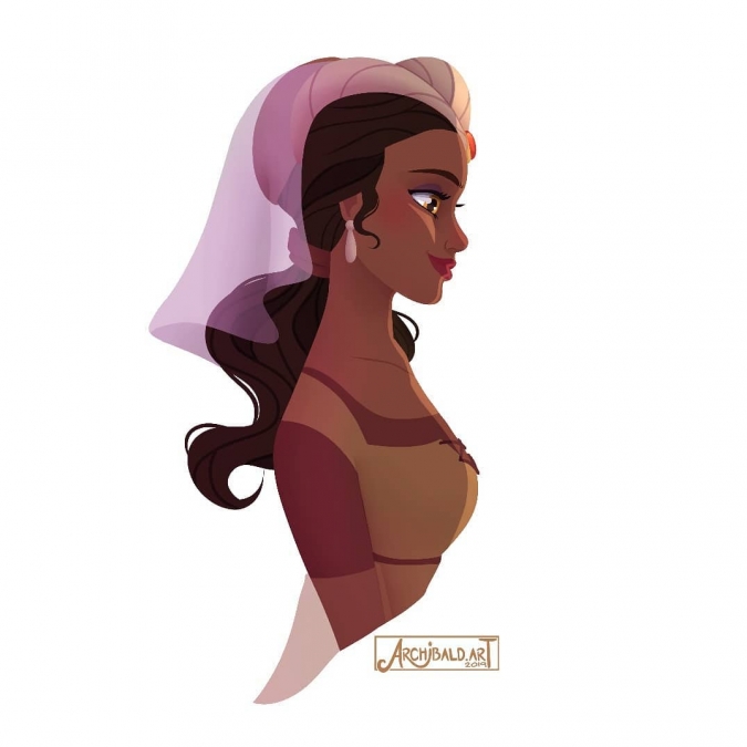 Archibald.art - художник фрилансер, возможно знакомый вам по рисункам Дисней Принцесс в стиле Чародеек или Дисней Принцесс в свадебных платьях. Да, принцесс он рисует часто. Одна из его серий работ посвящена различным нарядам и образам принцесс, нарисованных в профиль.