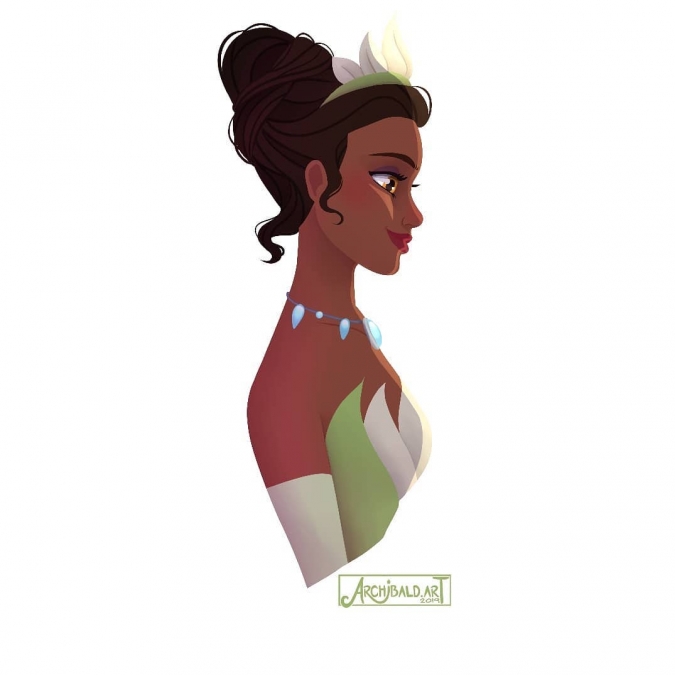 Вы знали что больше всего нарядов за один мультфильм сменила принцесса Тиана из мультфильма Принцесса и Лягушка? Всего она сменила 9 нарядов. С учетом того, что большую часть экранного времени она провела в теле лягушки это впечатляющий результат. Archibald нарисовал все 9 образов принцессы в формате очень красивых портретов.