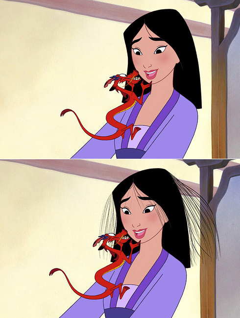 У принцесс из нашего мира намокшие волосы прилипают к голове, прически электризуются, ветер в спину задувает волосы на лицо, а корни волос даже у настоящих блондинок гораздо темнее чем кончики. Но мы любим дисней принцесс за то, какие они есть, просто иногда интересно взглянуть на подобные иллюстрации.