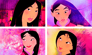 Красочные анимированные картинки с Мулан, похожие на ожившие картины.