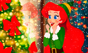 Картинки с принцессами Дисней, "переодетыми" в различные новогодние костюмы.